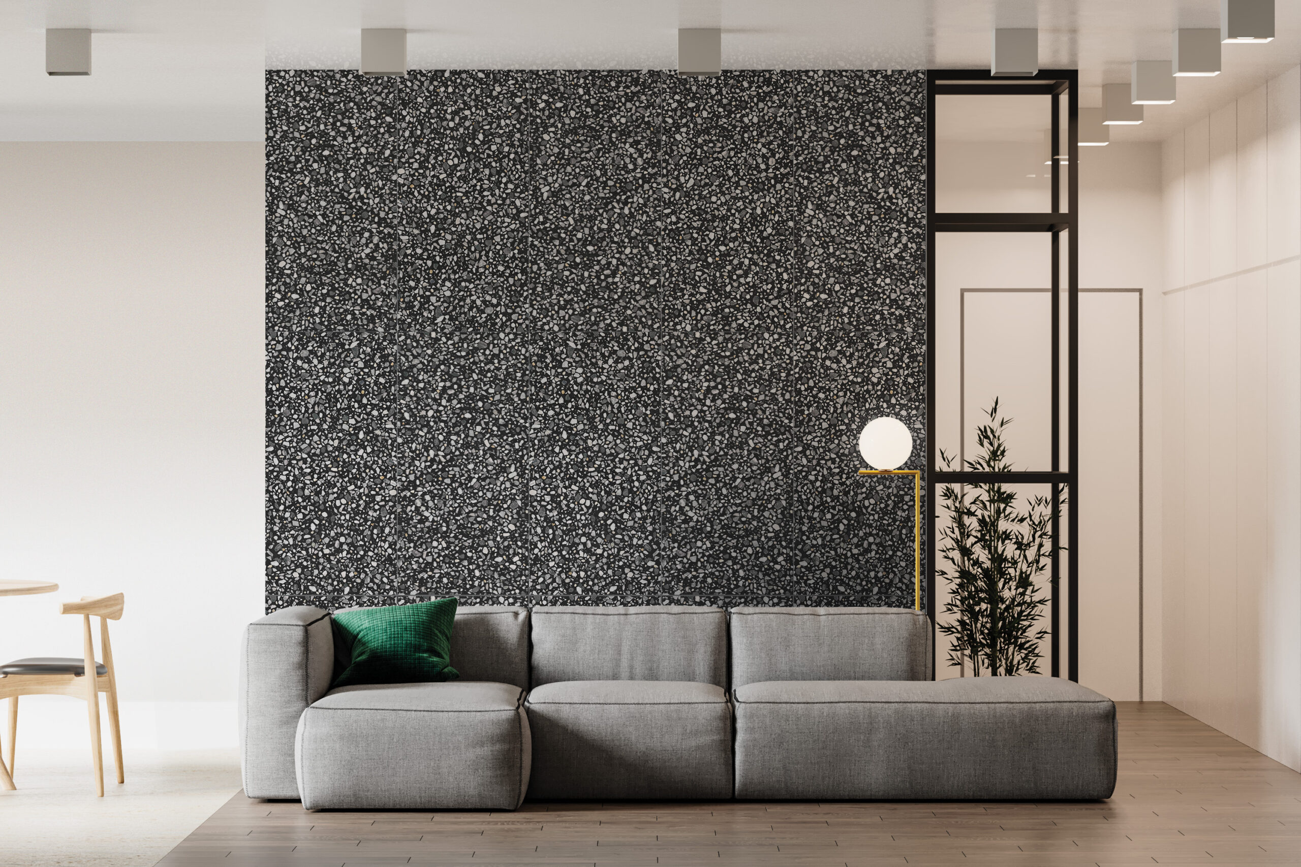The timeless pattern of terrazzo design inspired by Italian artisanal tradition, presents in full-body porcelain stoneware for simple installation, easy cleaning and durability with minimal maintenance.